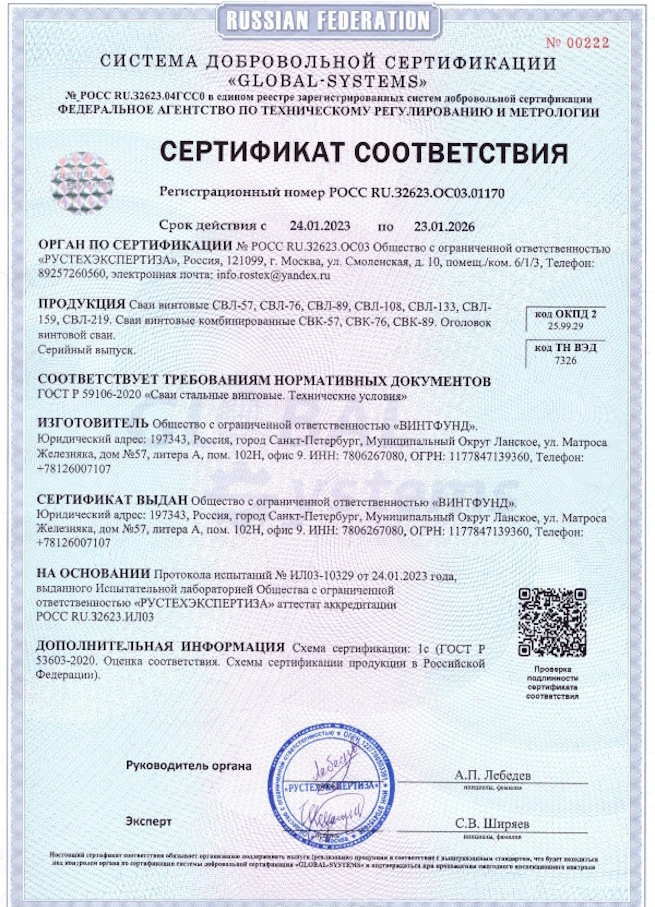 Добровольная сертификация винтовых свай